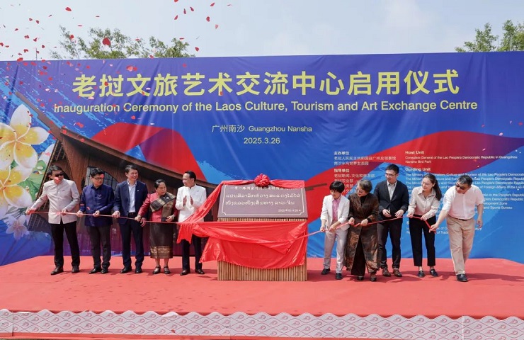 The Lao Culture, Tourism and Art Exchange Center was officially inaugurated at the Nansha Bird Park on Tuesday.